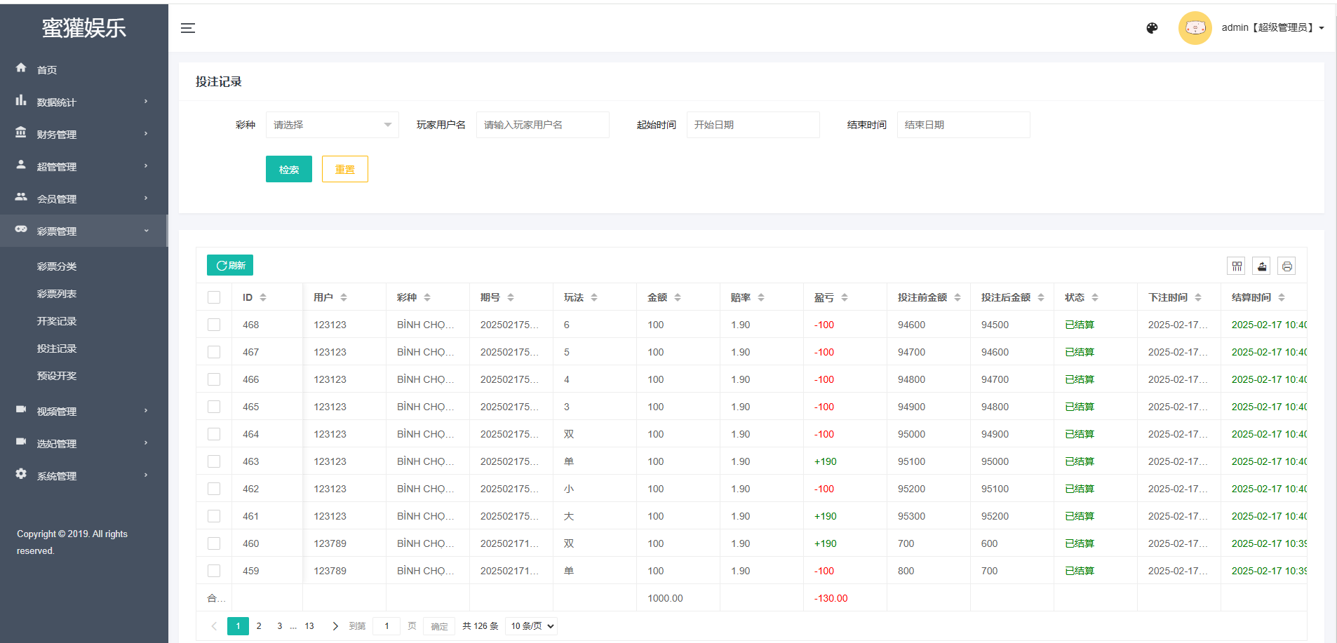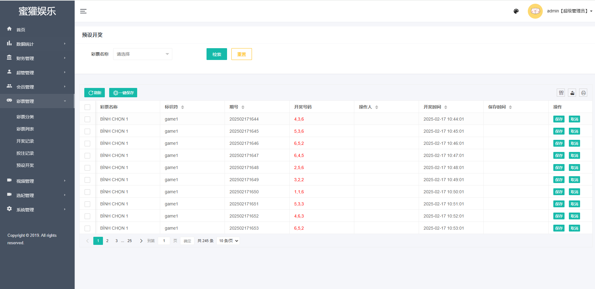 任务彩种都是系统彩,后台可预设控制
