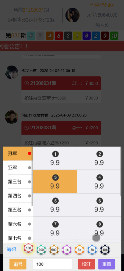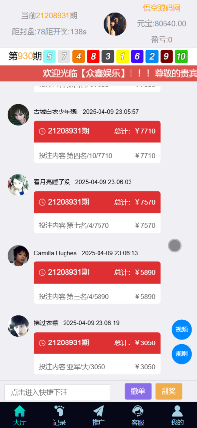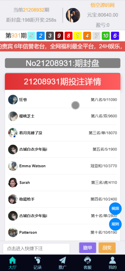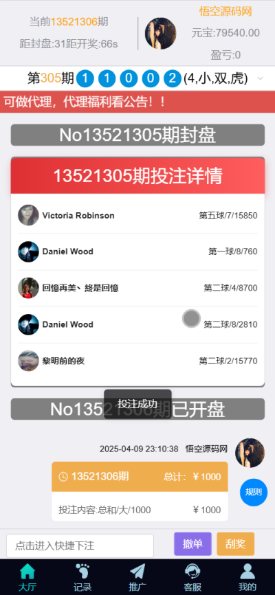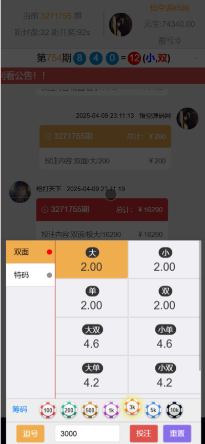 程序有返水和佣金,带机器人自动下注,后台可以预设开奖