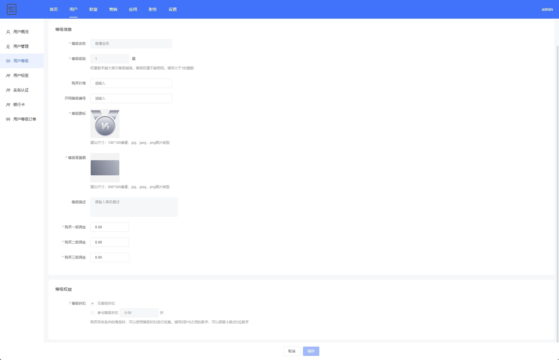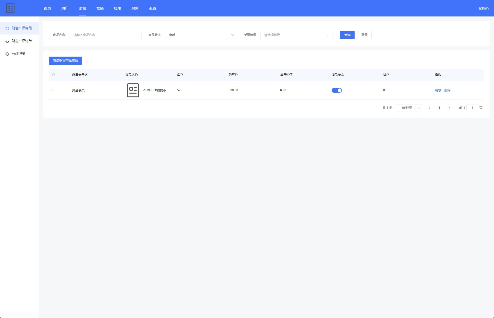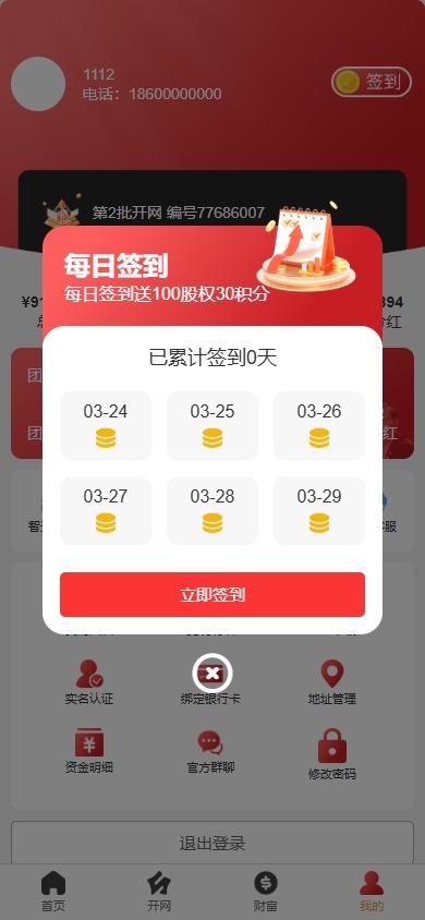 系统功能:产品投资分红、等级购买、签到、三级分销等功能