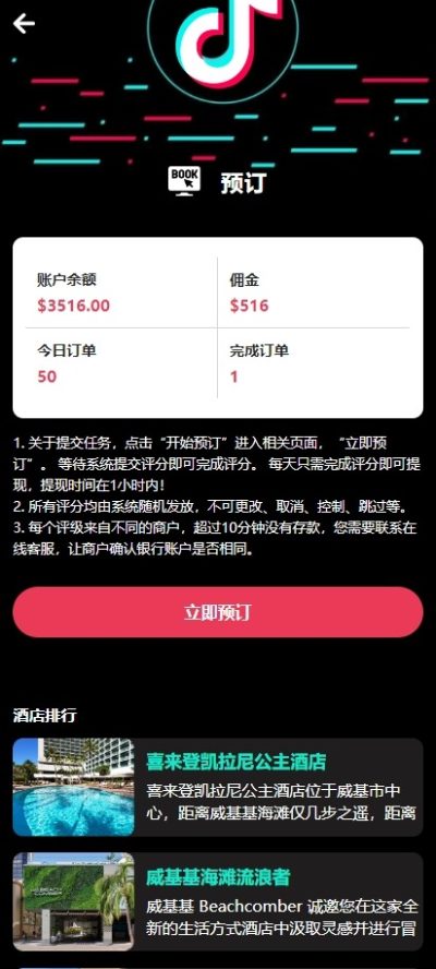 多语言TIKTOK酒店刷单-酒店抢单刷单系统-连单卡单