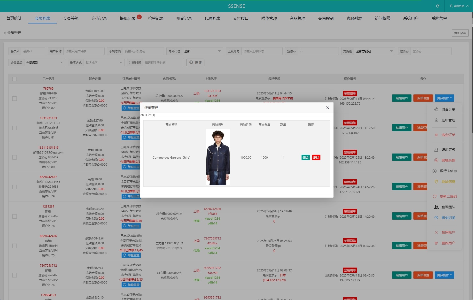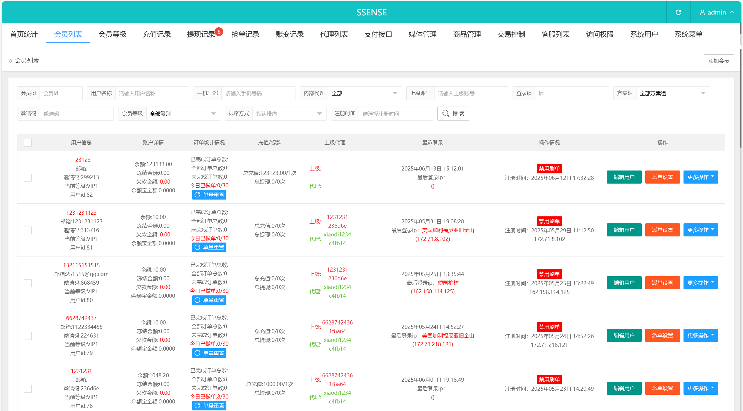 系统功能:派单(支持幸运单,高级单),连单卡单,信用分,订单重置等功能