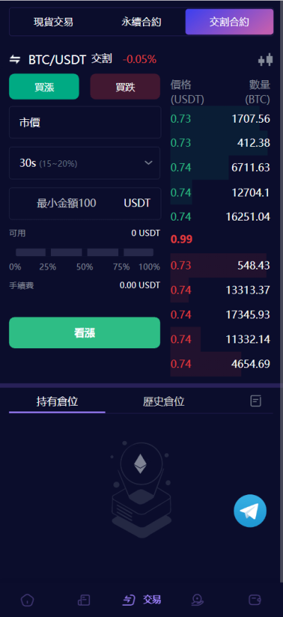 模拟账户+现货交易+永续合约+交割合约+基金理财+锁仓挖矿+质押贷款+闪兑/前端vue编译后+后端Java