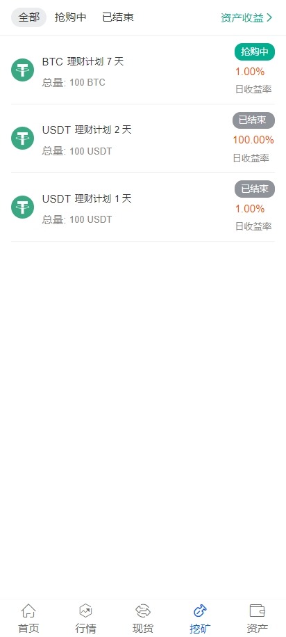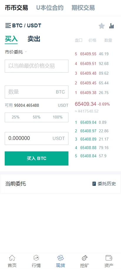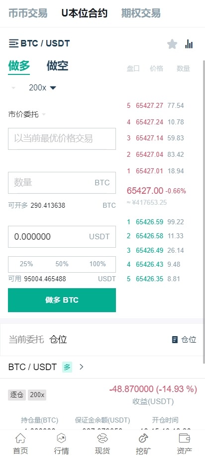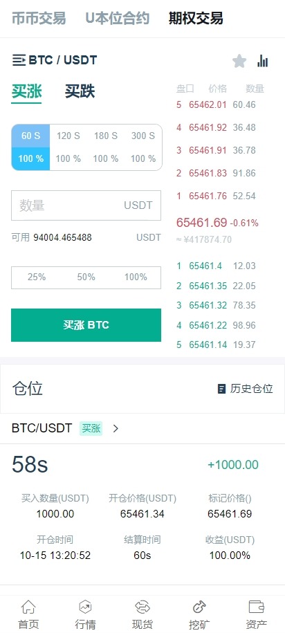 系统功能:币币交易、U本位合约、期权交易、挖矿、兑换等功能