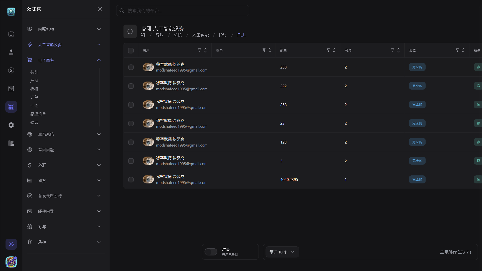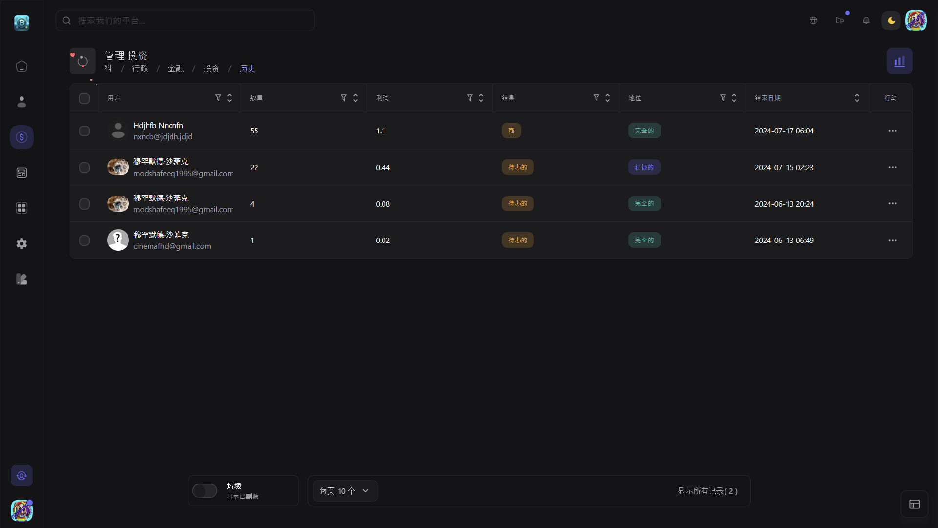 以用户为中心的仪表板:访问全面的用户仪表板,提供有关交易活动和投资组合表现的详细见解。