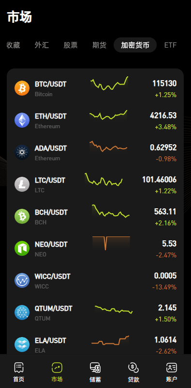 功能:合约交易,期权交易,申购,量化,借贷,实名认证等
