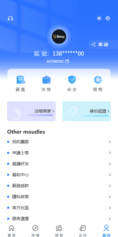 投资理财,新币认购,法币交易,社区聊天,签到等功能