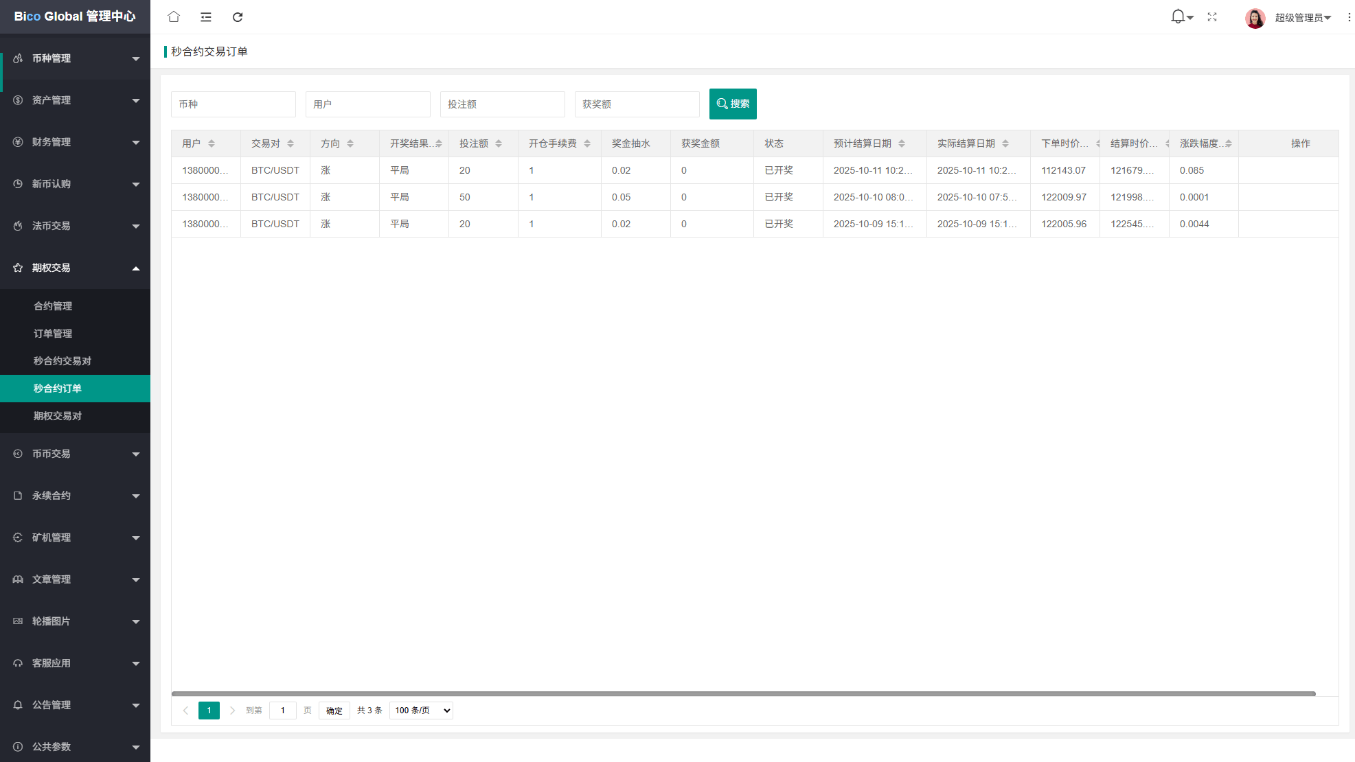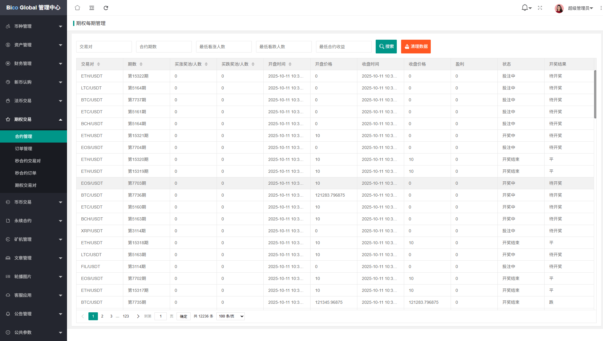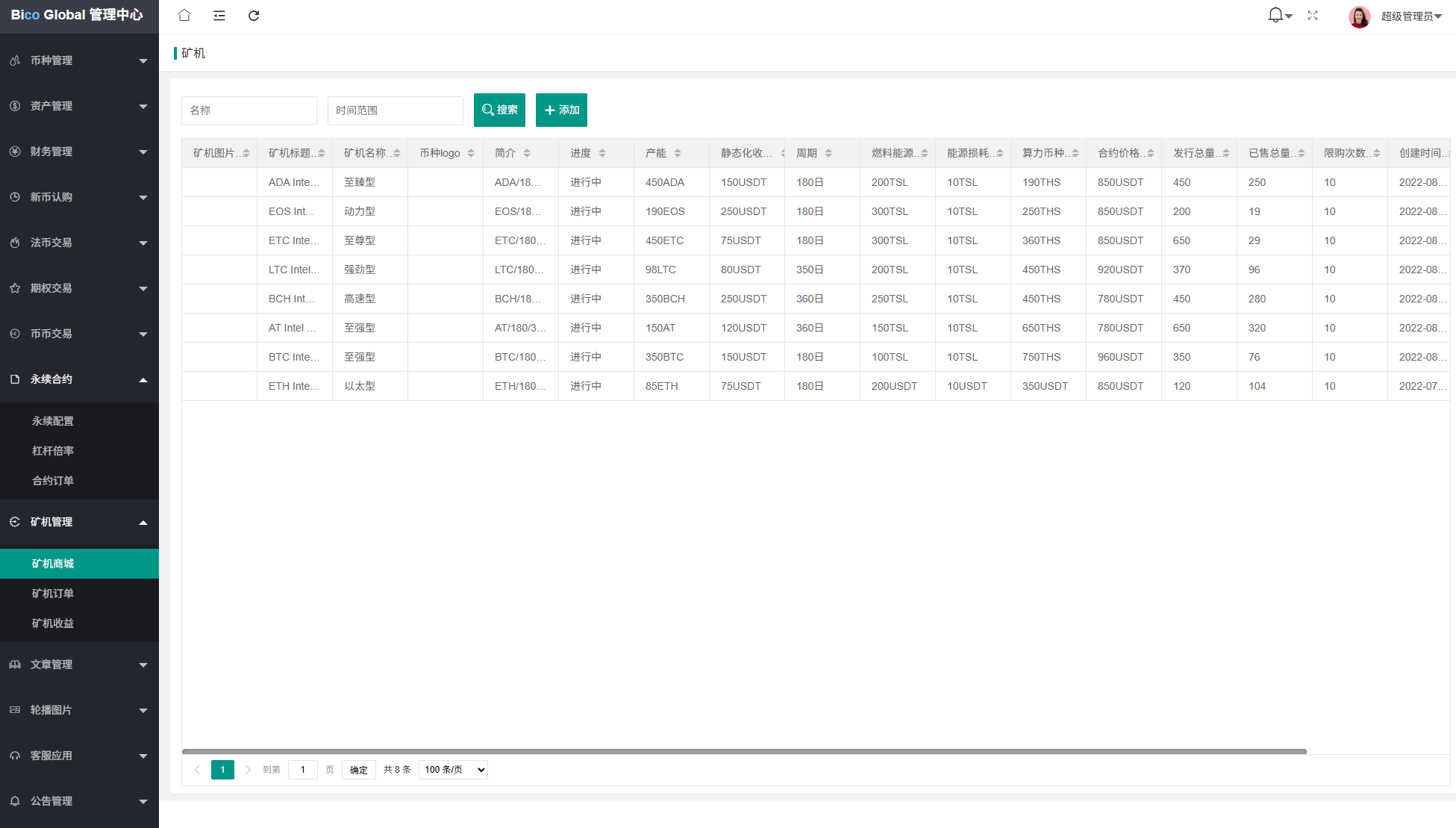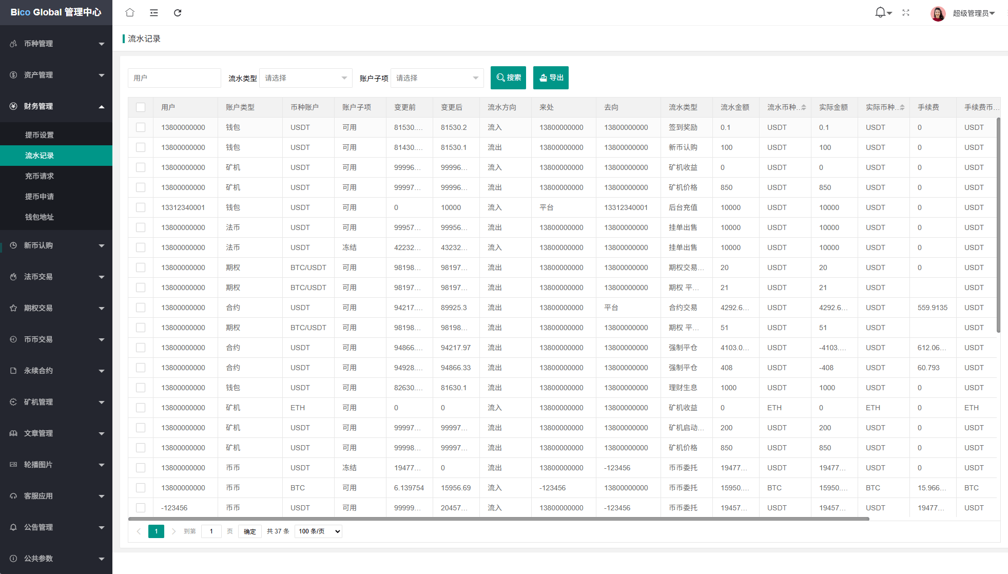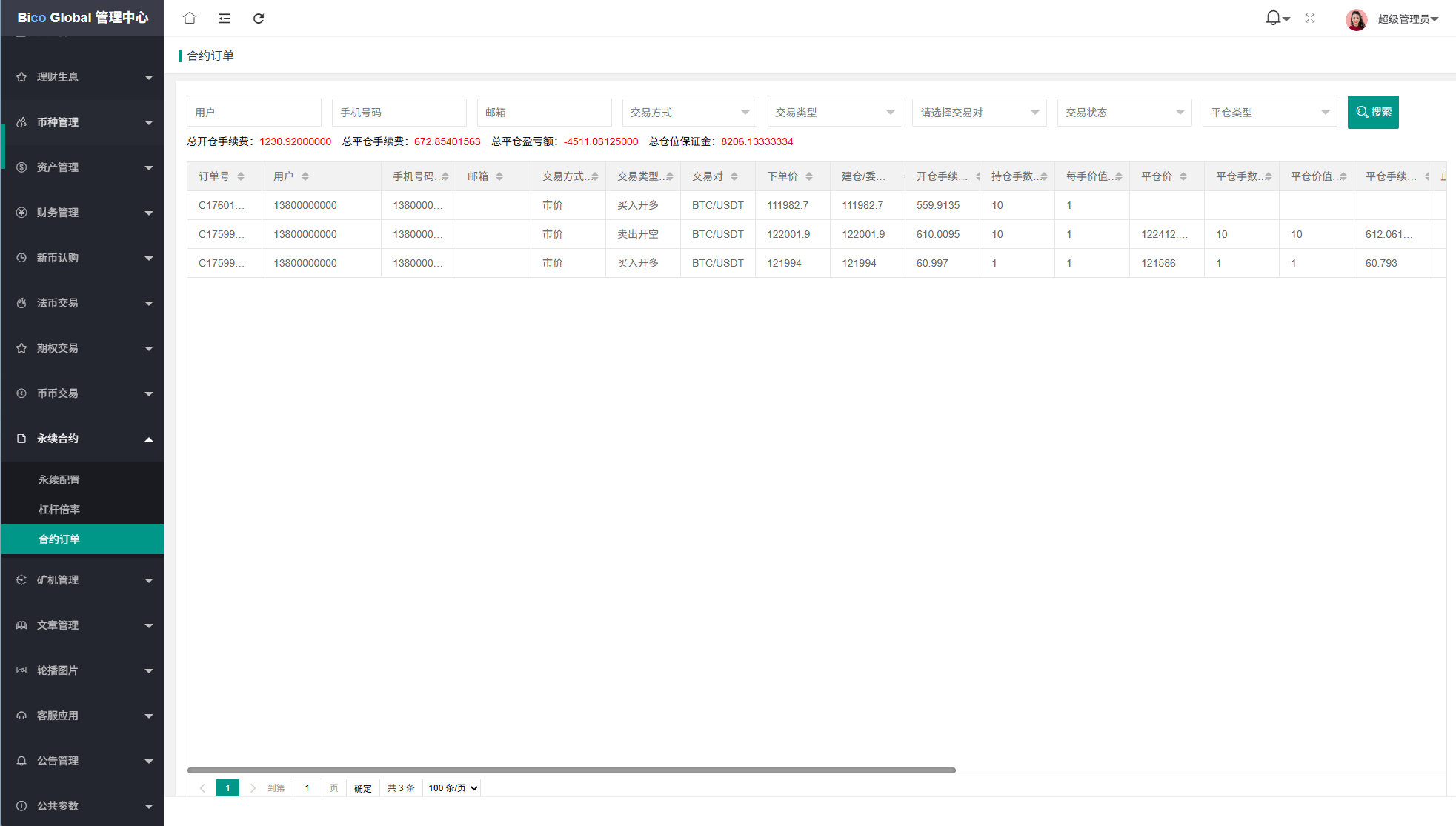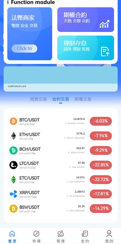 系统功能:永续合约,期权合约,秒合约,平台币,矿机质押,