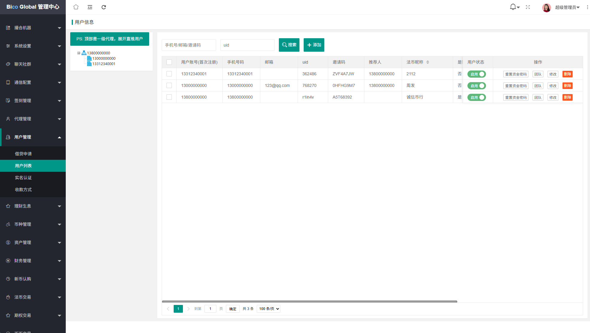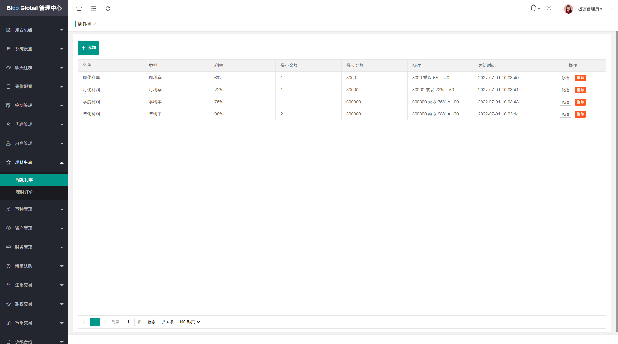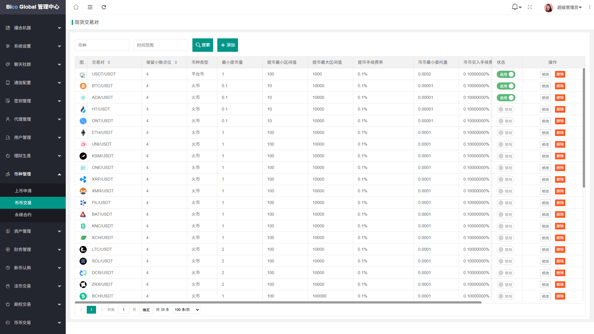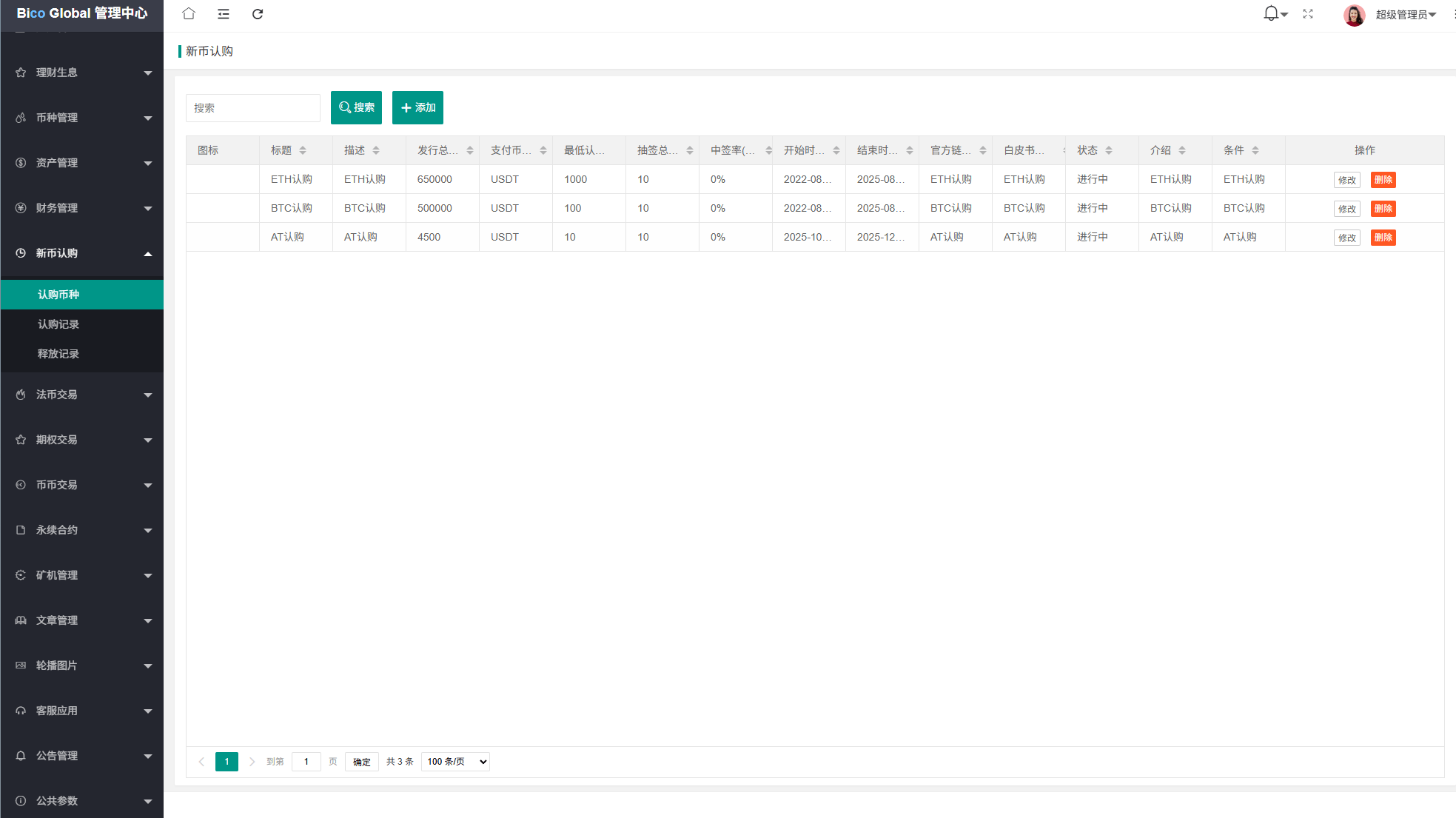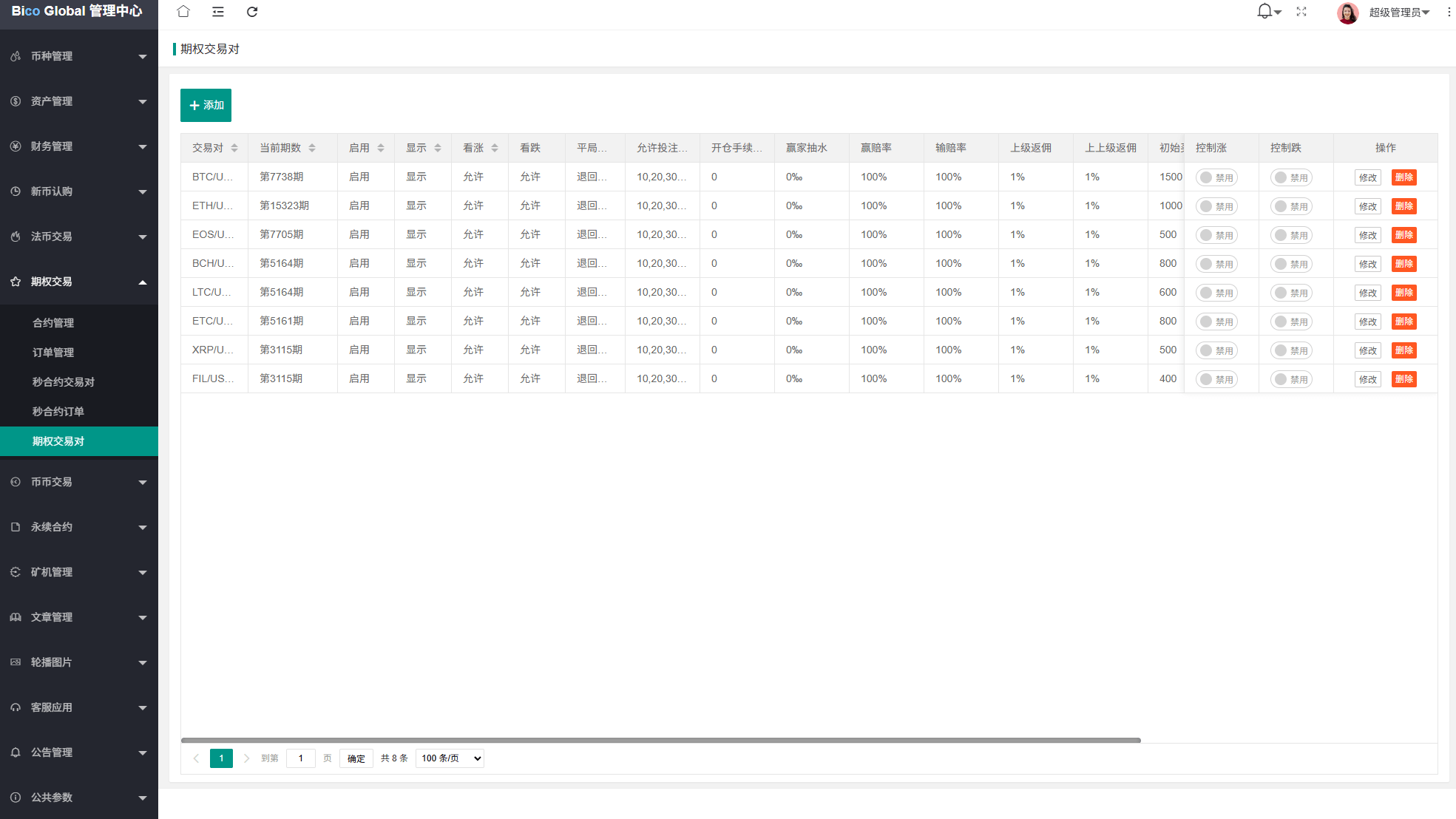 系统功能:永续合约,期权合约,秒合约,平台币,矿机质押,