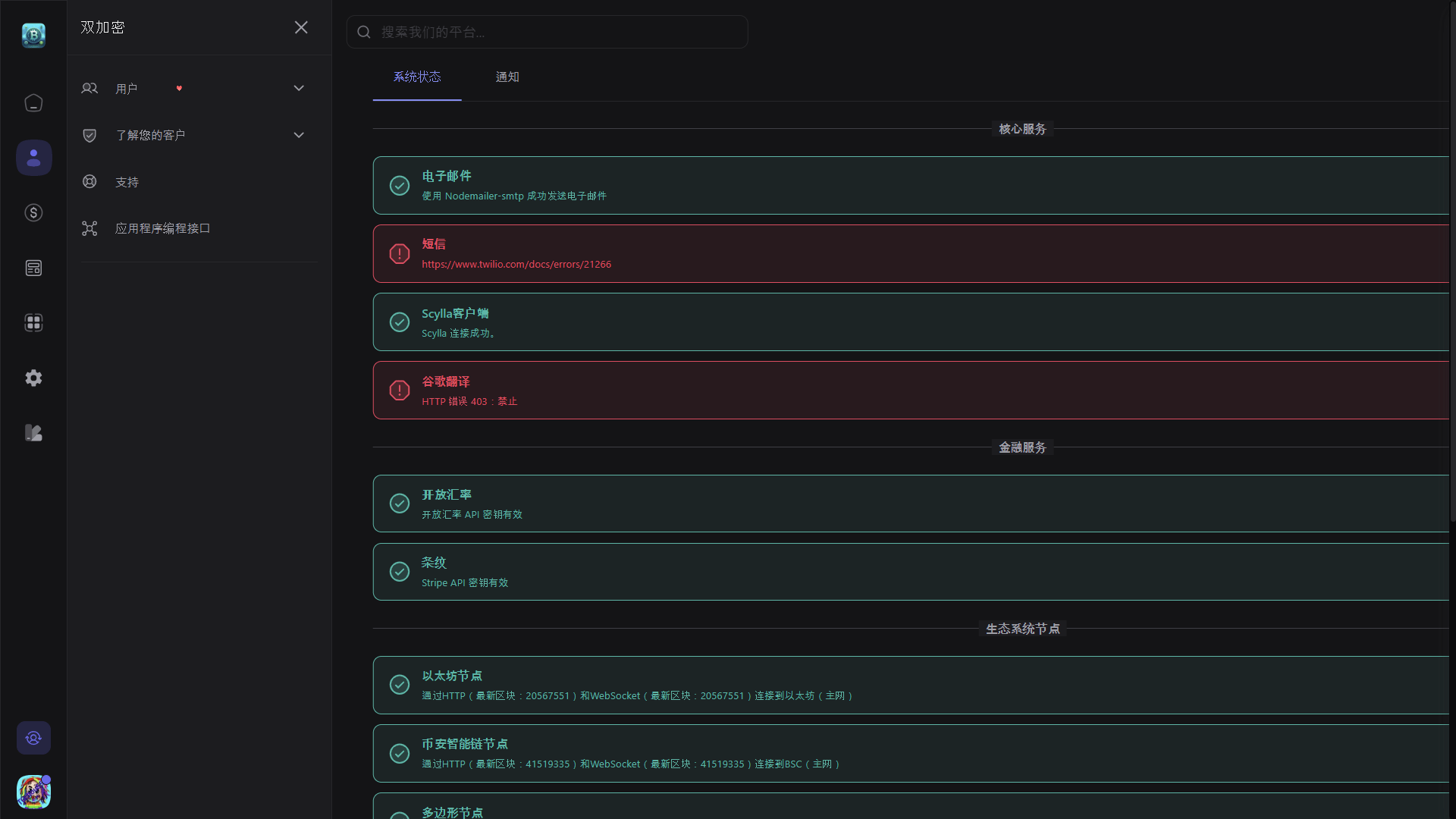 系统健康检查:对管理仪表板进行全面的健康检查,并提供错误报告。
