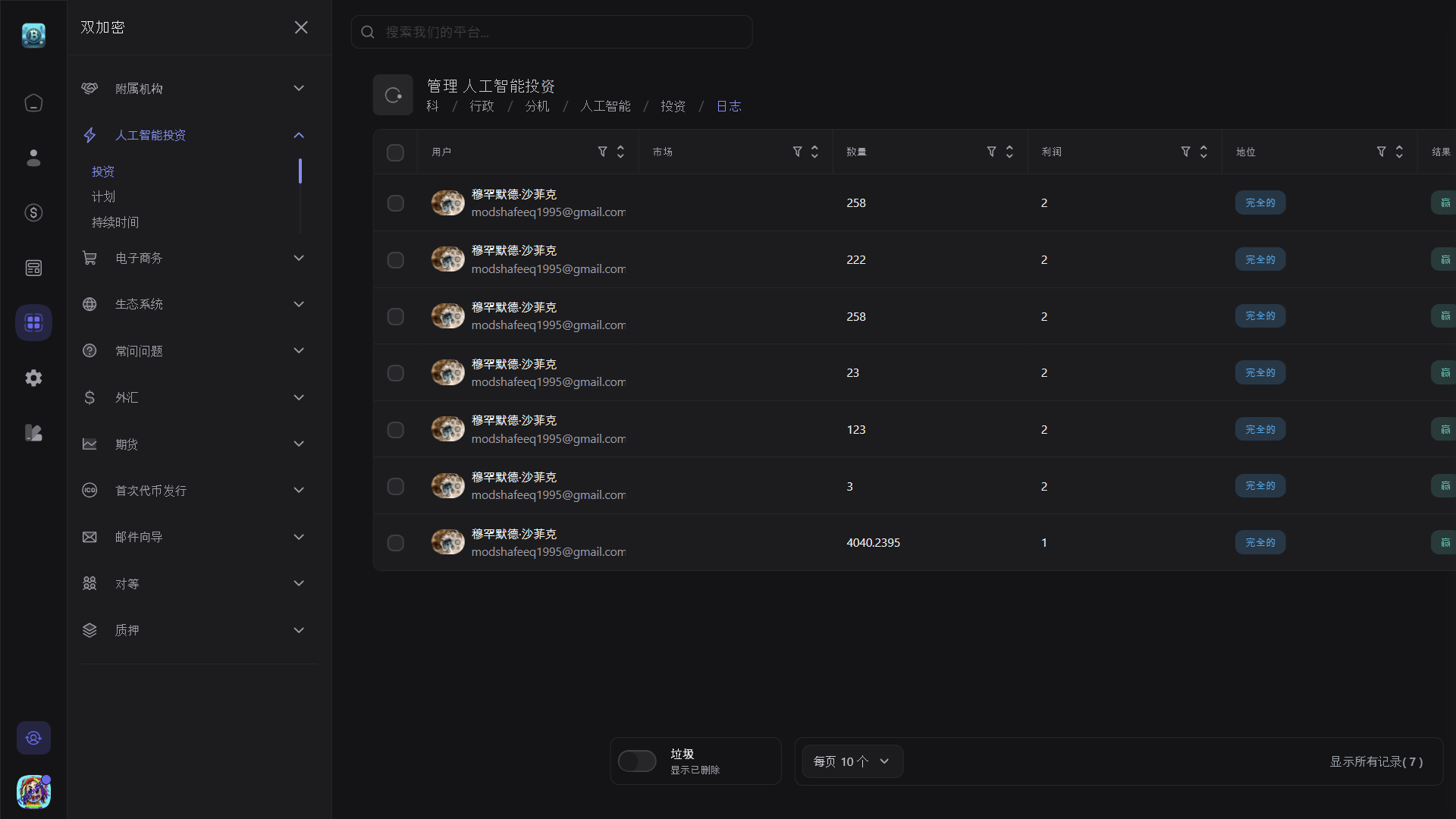 以用户为中心的仪表板:访问全面的用户仪表板,提供有关交易活动和投资组合表现的详细见解。