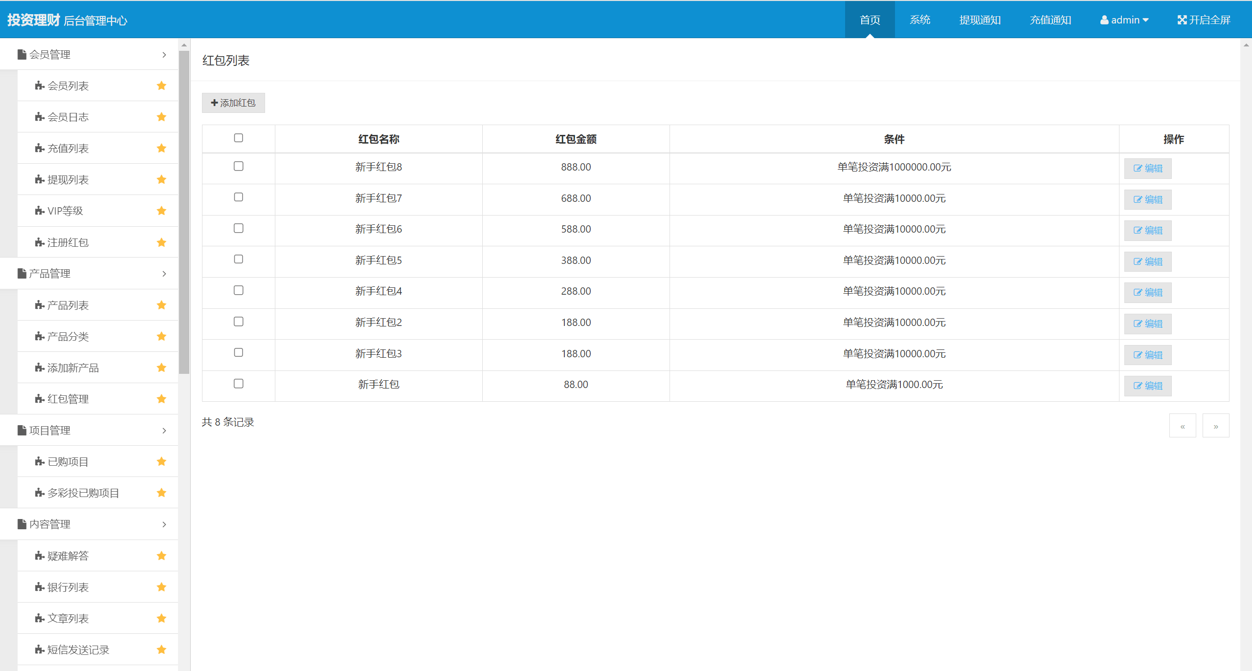 VIP 理财投资 8语言-国际理财-返利基金-海外项目-投资金融源码-支持多语言-可定制二开 源码介绍 多语言项目投资平台,不限项目类型,已集成微信扫码、支付宝扫码、银行卡转... 1 年前 0 3500