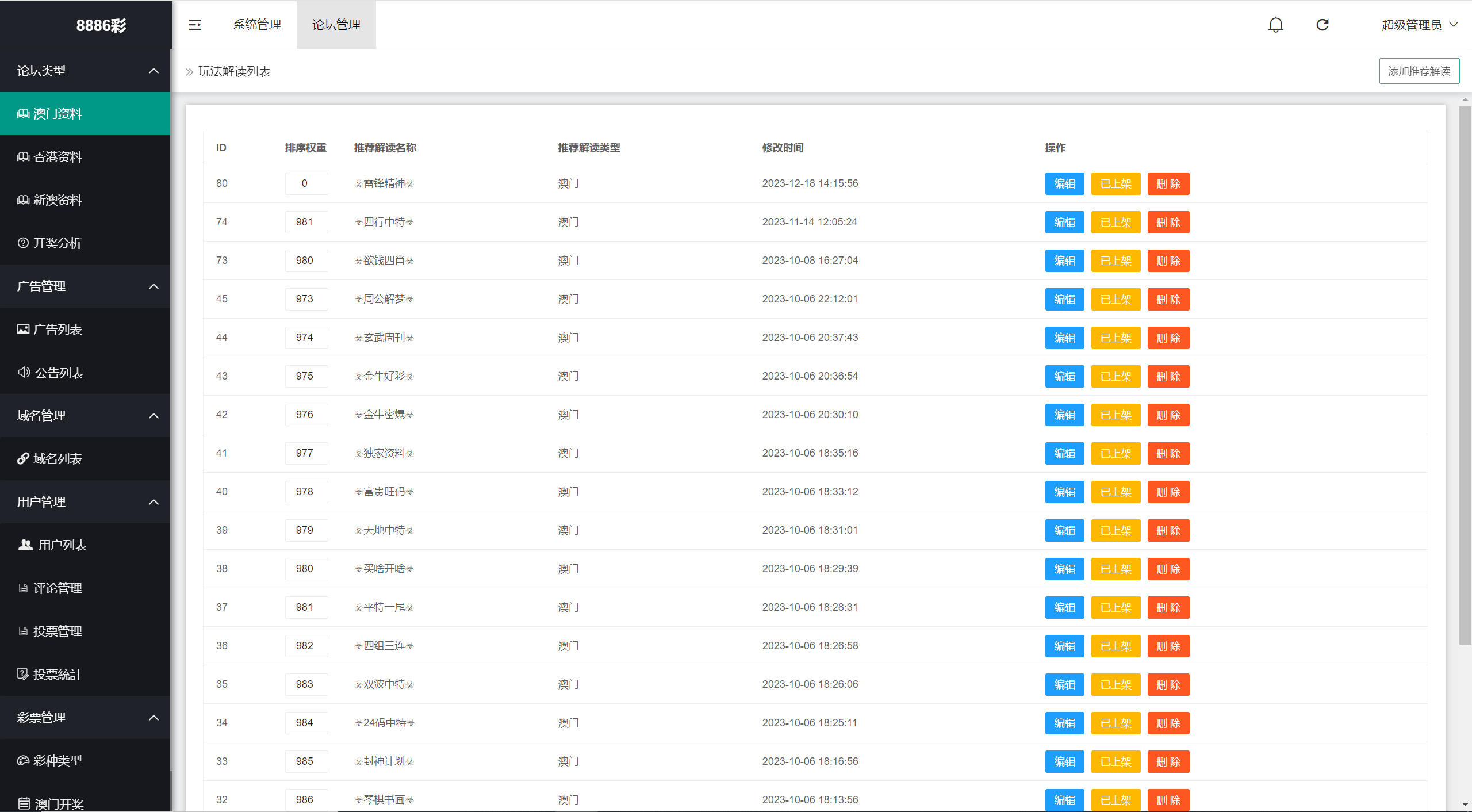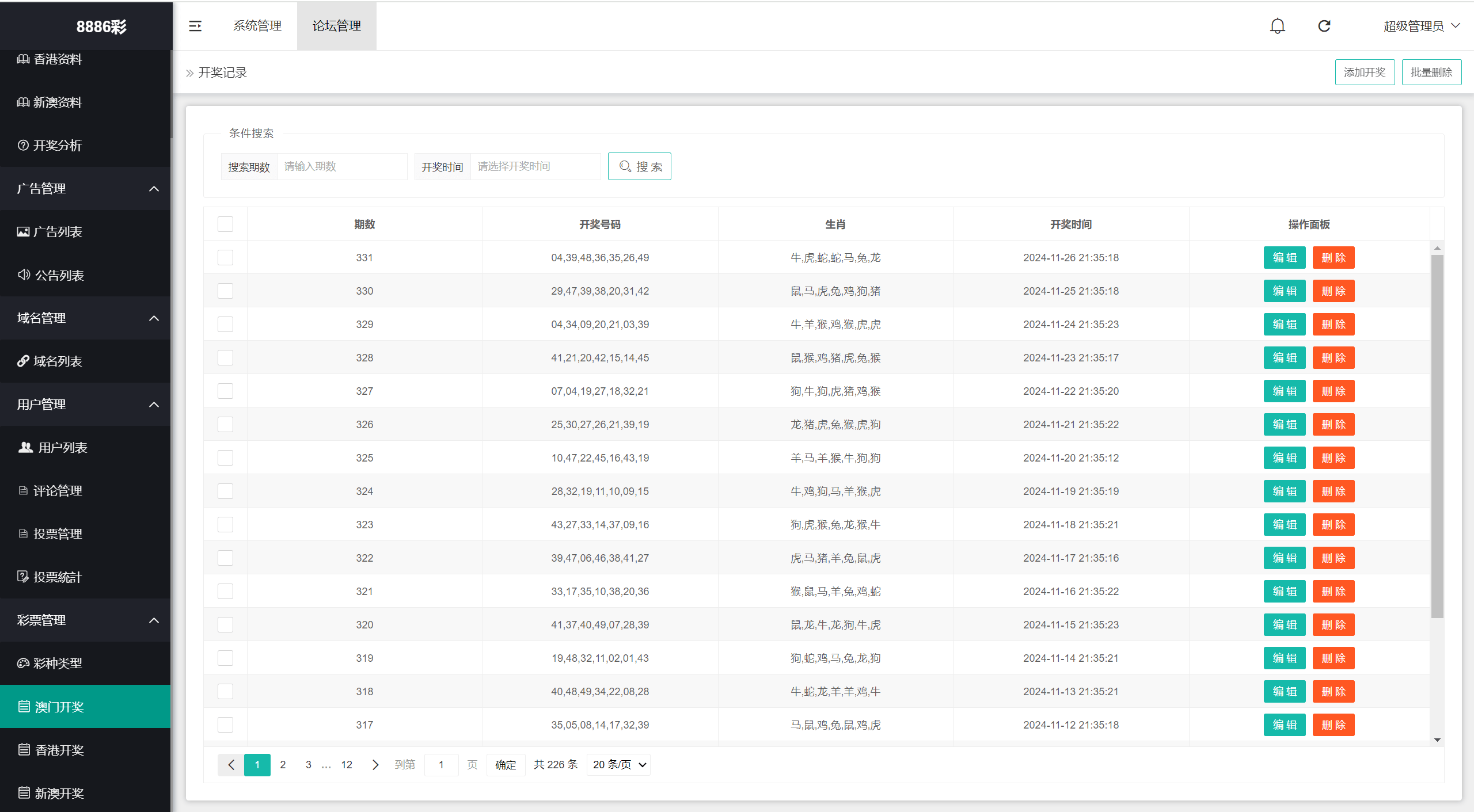 运营版六合彩资源图库开奖网/采集正常/论坛资料/投票评论/带留言板功能 声明:本站所有文章,如无特殊说明或标注,均为本站原创发布。任何个人或组织,在未征得本站同意时,禁止复制、盗用、采集、发布本站内容到任何网站、书籍等各类媒体平台。如若本站内容侵犯了原著者的合法权益,可联系我们进行处理。