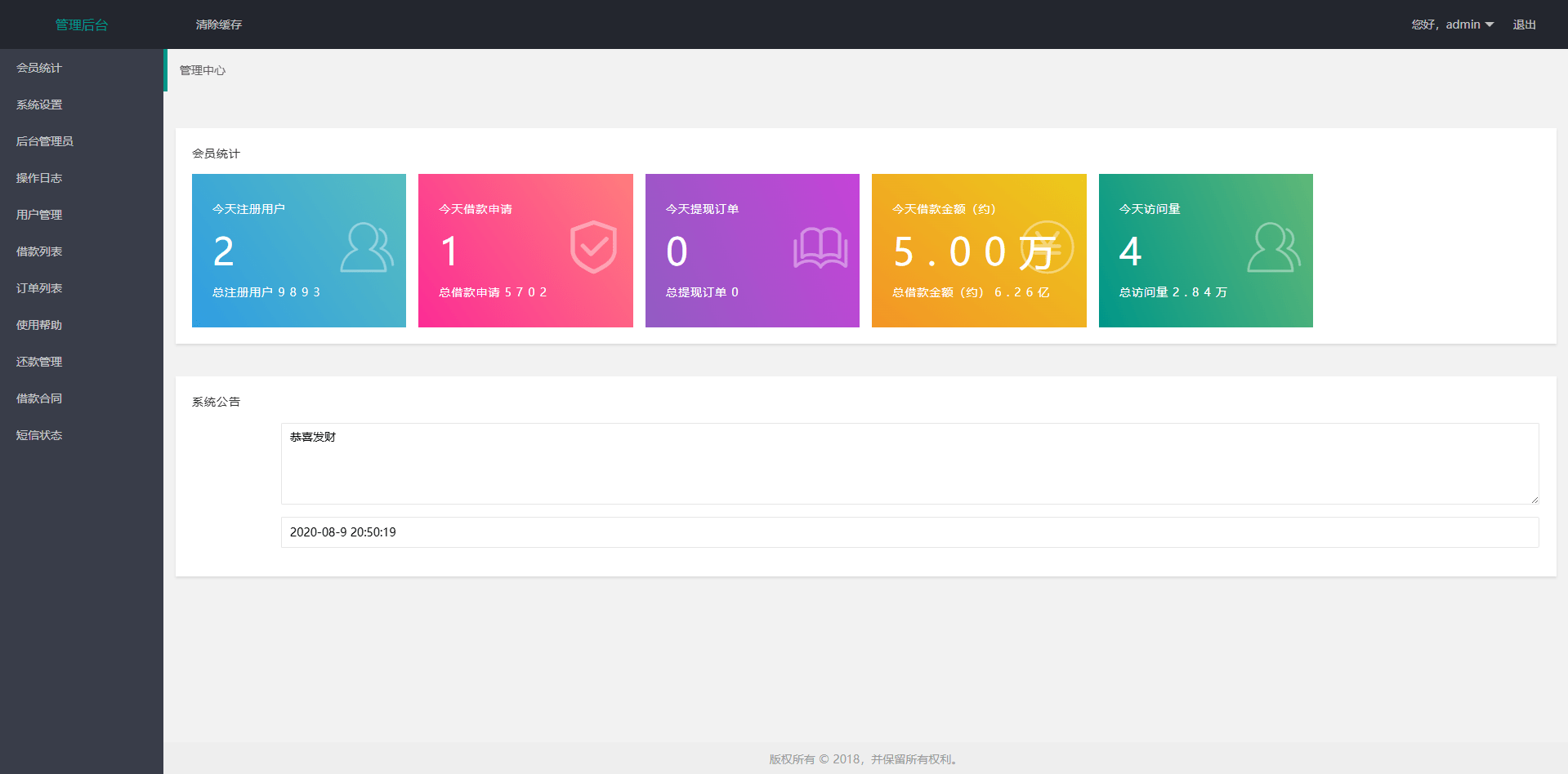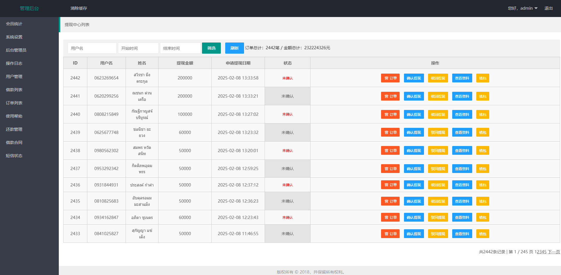 海外贷款系统/泰国贷款系统/小额套路贷款源码 二开版泰国小额贷款系统,系统正常运营 前端单泰语,支持二开其他语言 声明:本站所有文章,如无特殊说明或标注,均为本站原创发布。任何个人或组织,在未征得本站同意时,禁止复制、盗用、采集、发布本站内容到任何网站、书籍等各类媒体平台。如若本站内容侵犯了原著者的合法权益,可联系我们进行处理。