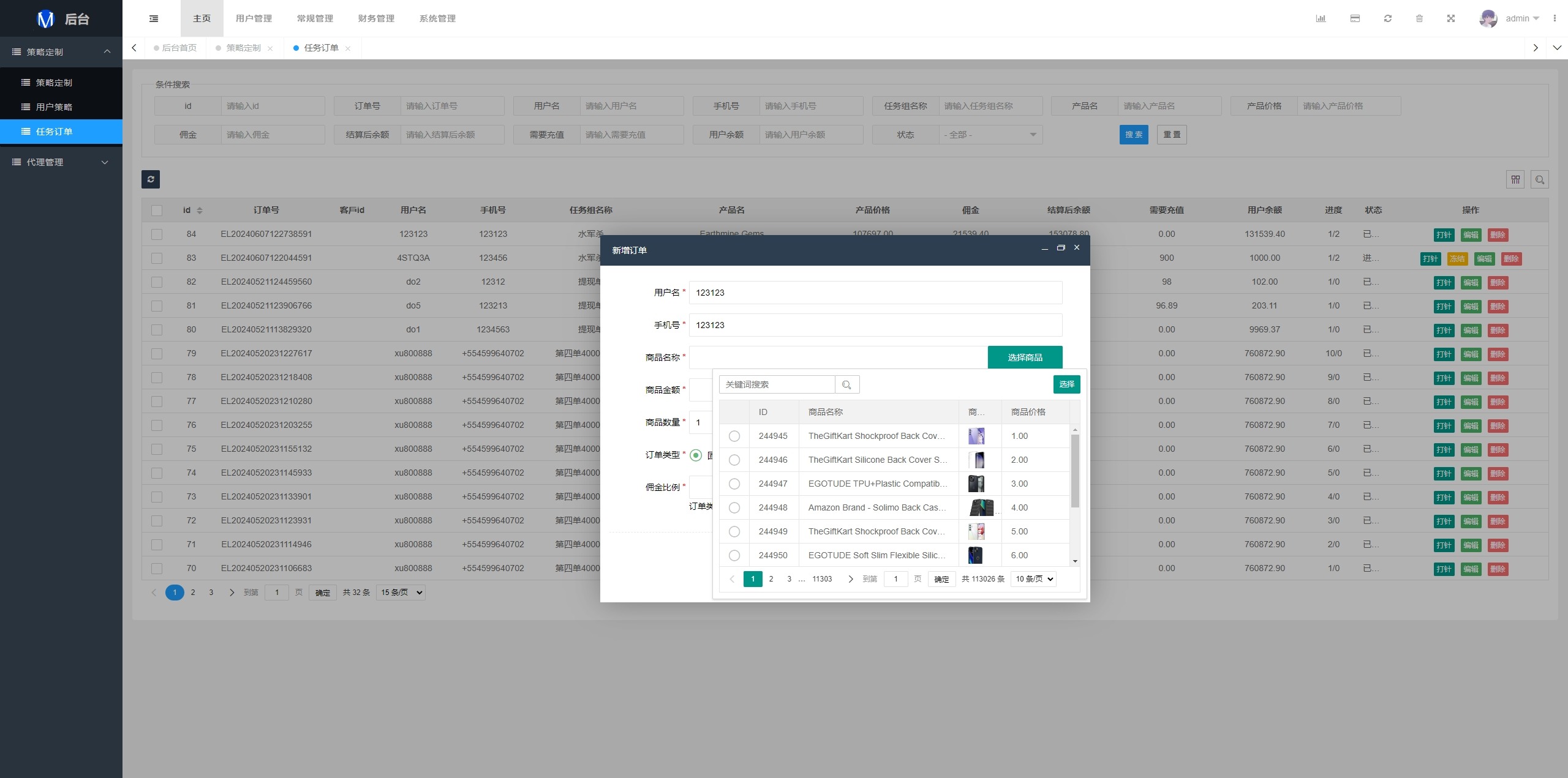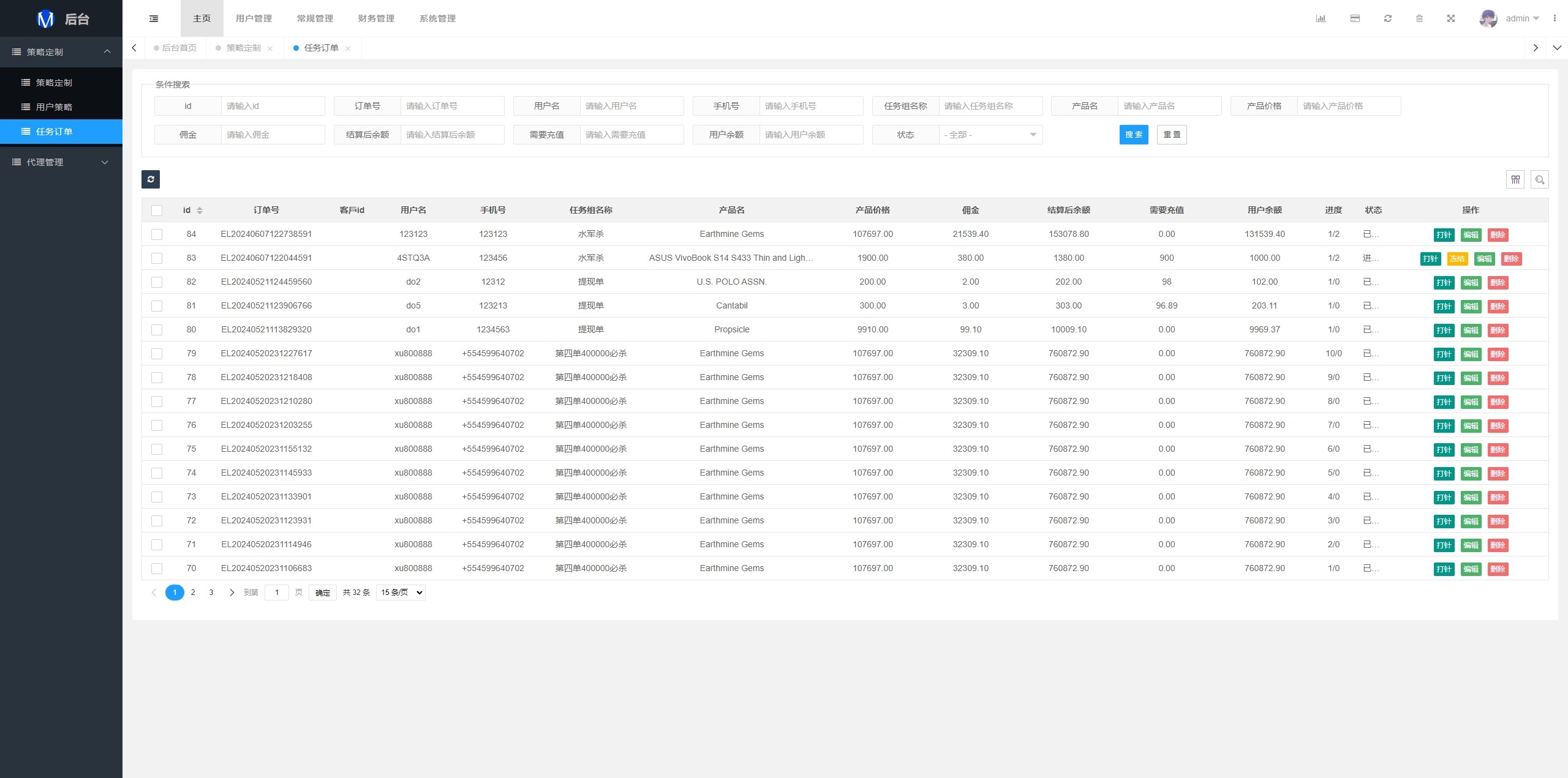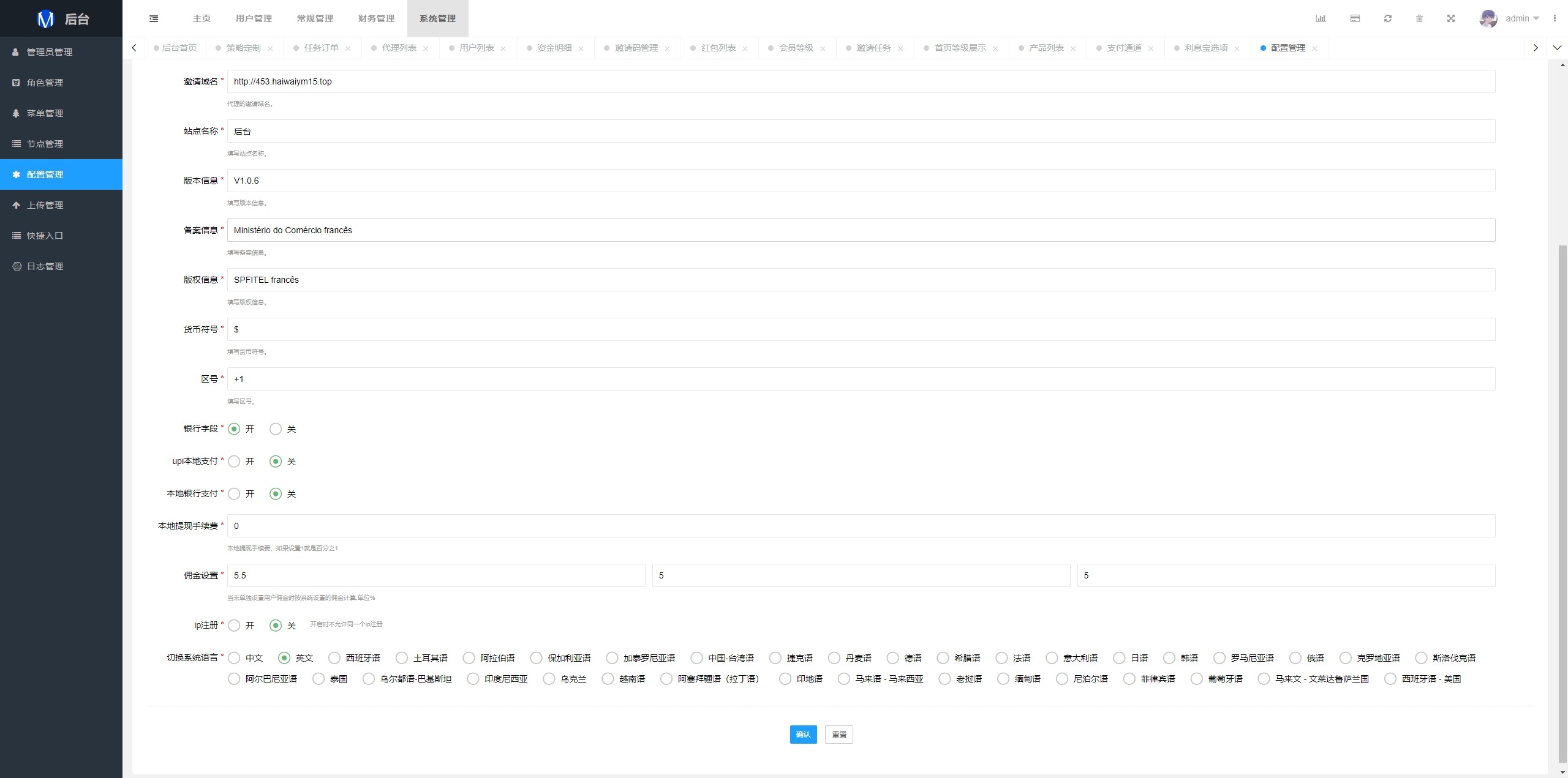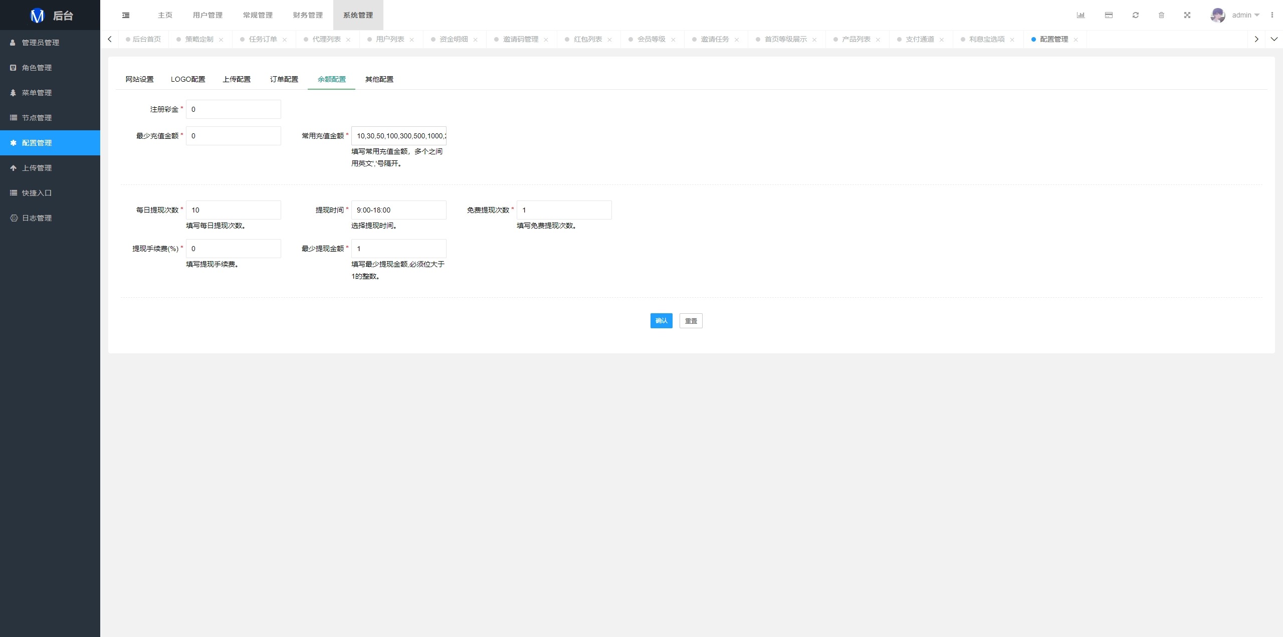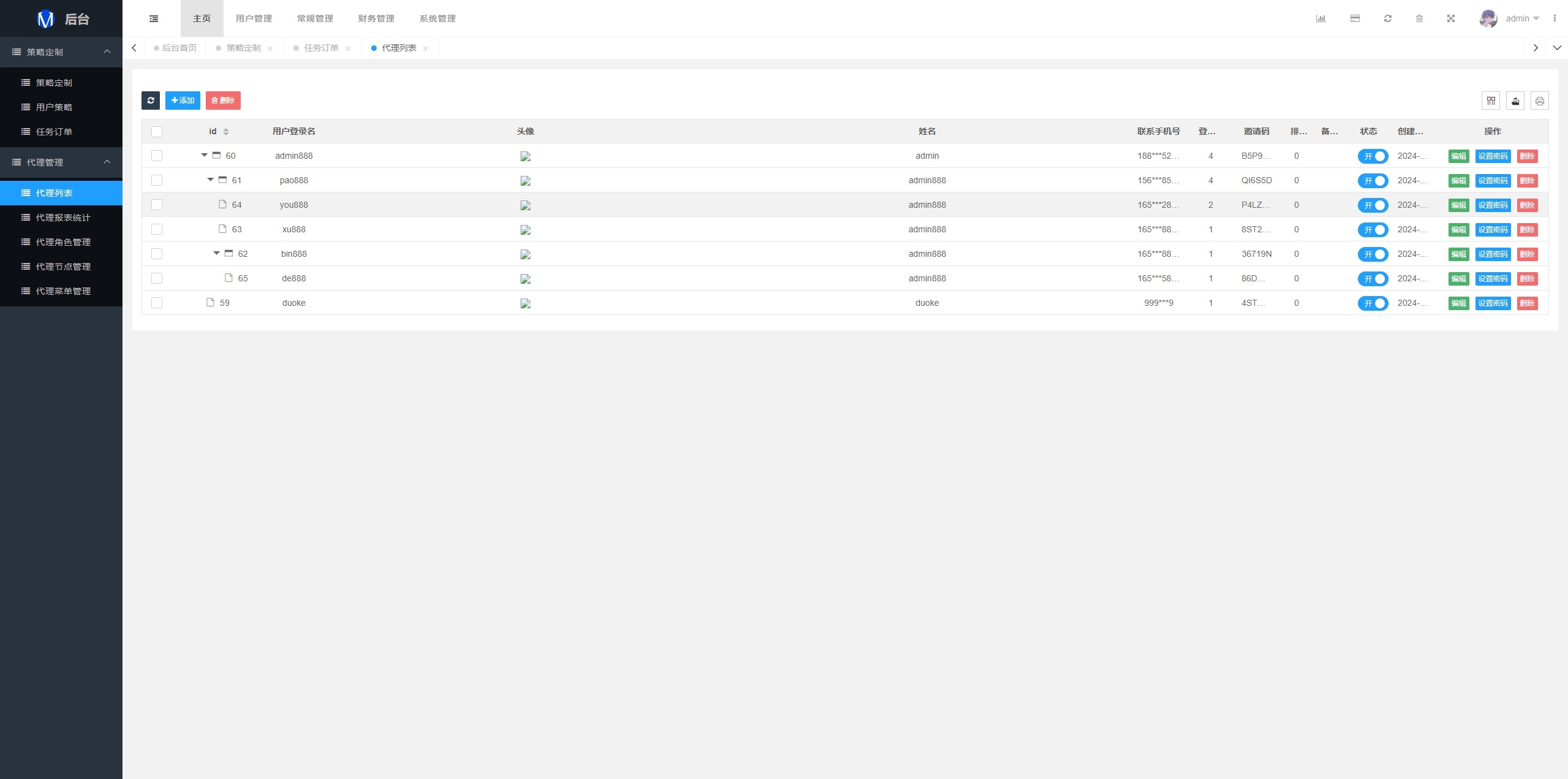 系统支持策略配置,后台共享代理后台独立,系统基本符合市场需求,单独的代理后台等功能