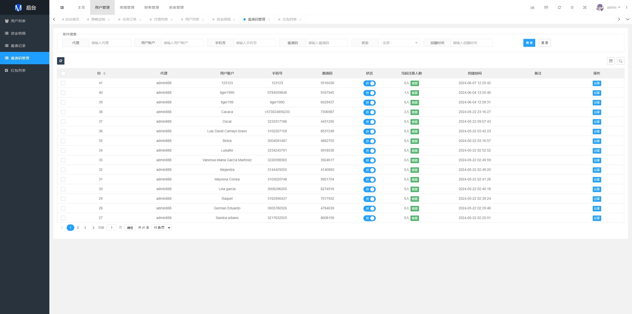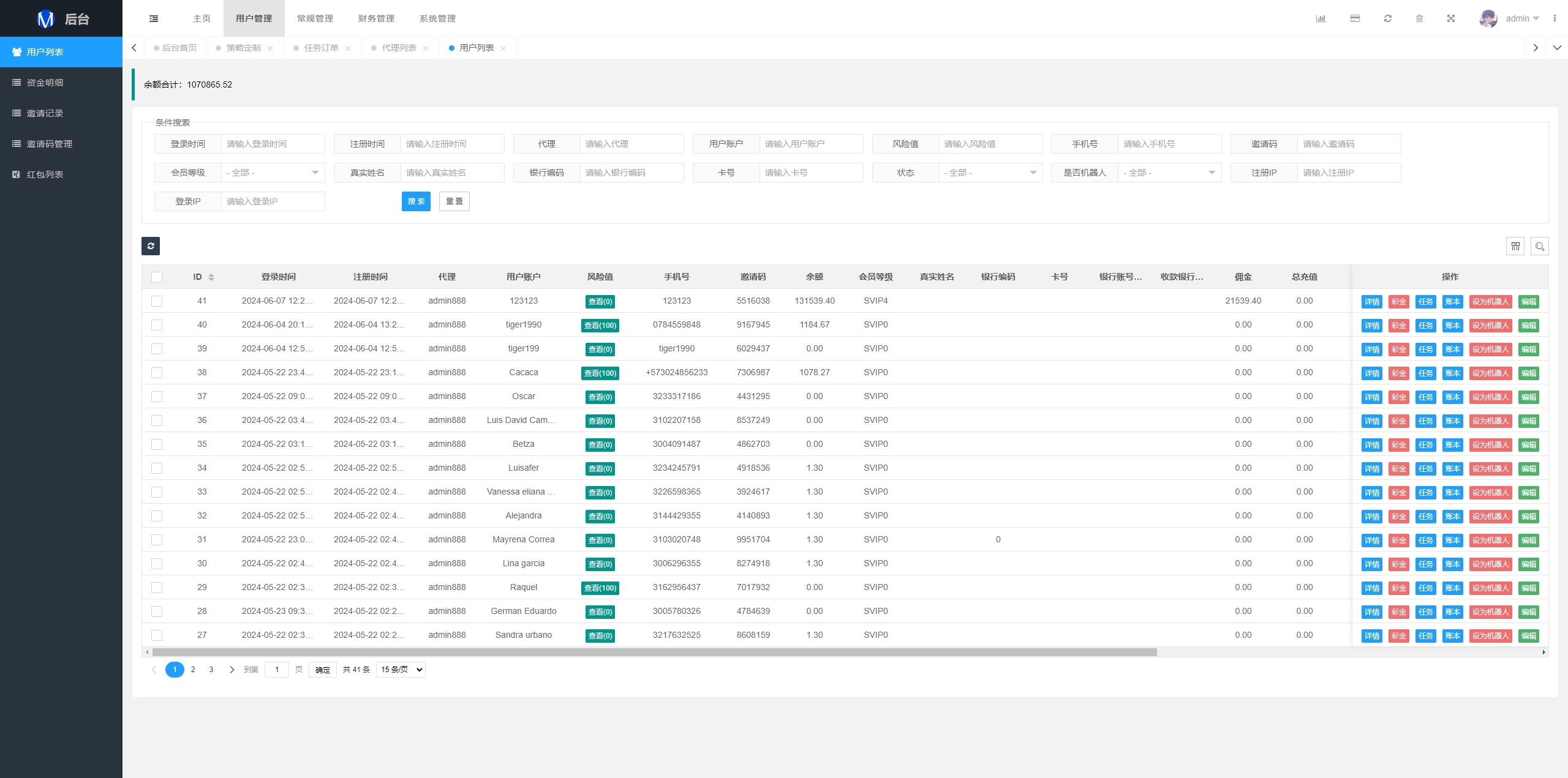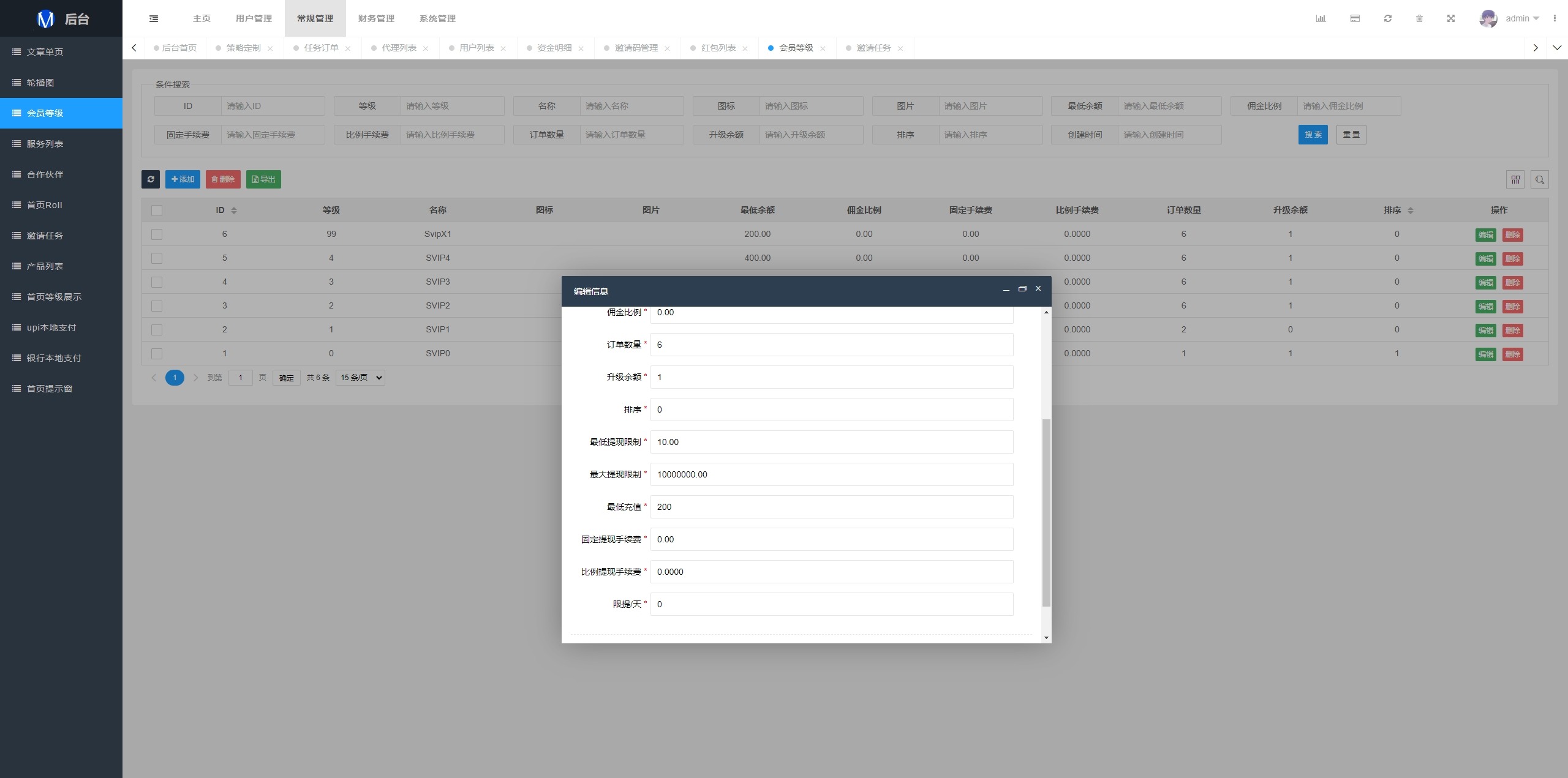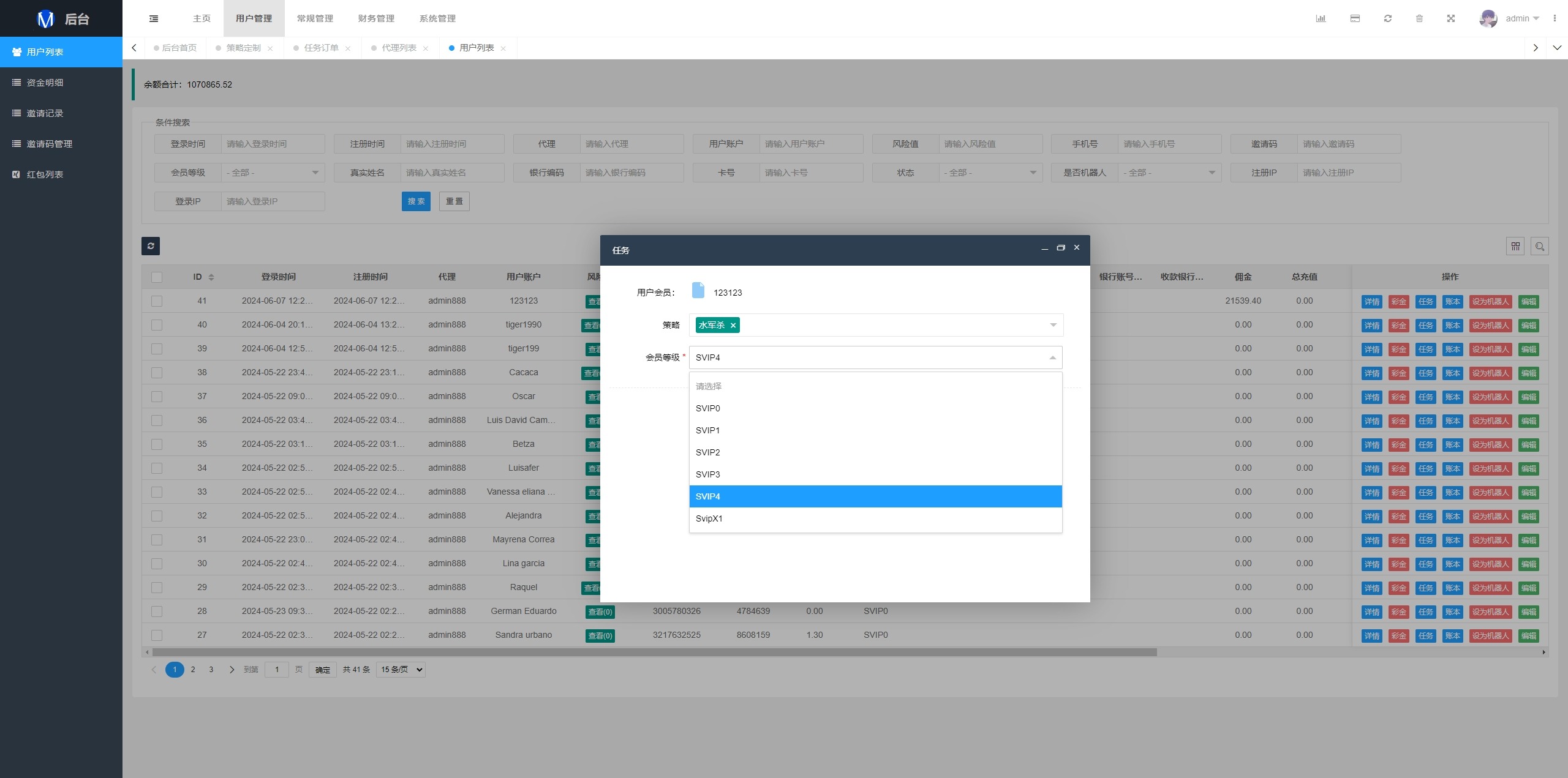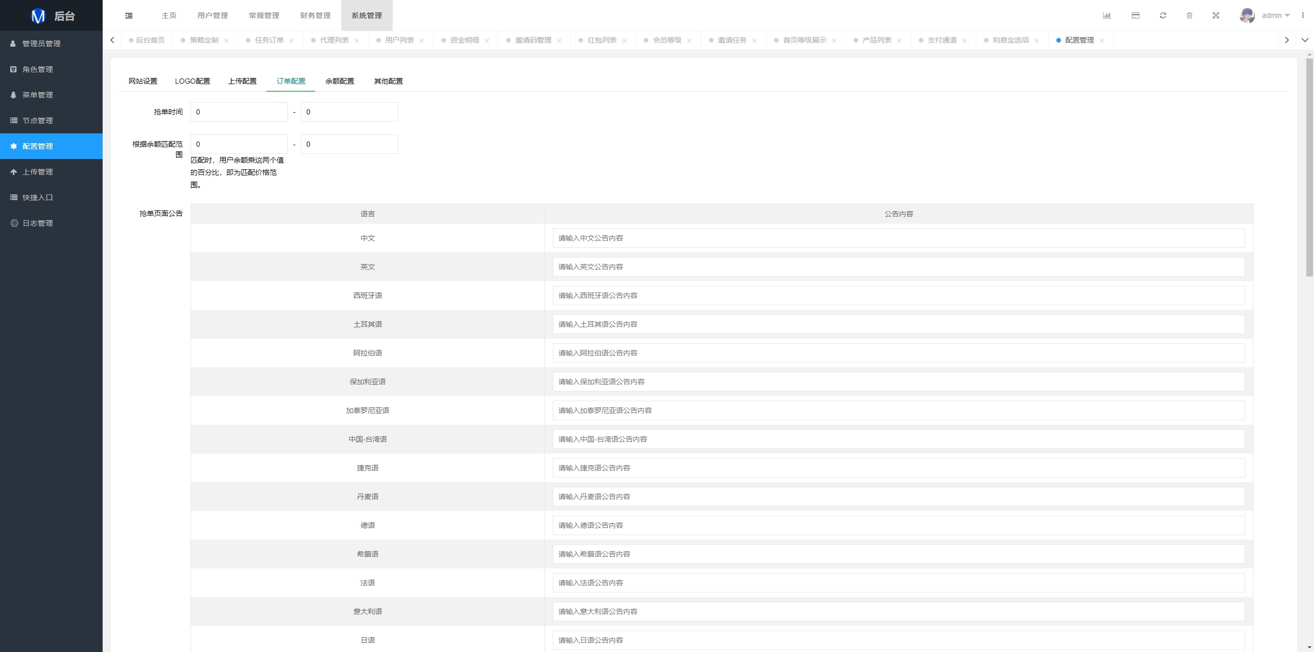 系统支持策略配置,后台共享代理后台独立,系统基本符合市场需求,单独的代理后台等功能