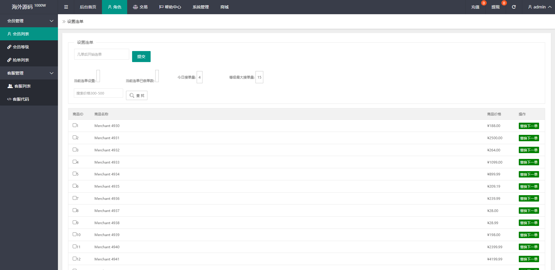 源码介绍 白色版-海外抢单刷单系统-刷单连单控-订单自动匹配系统 白色版海外抢单刷单系统,系统支持连单、重置抢单、暗扣等功能 系统运行丝滑流畅 客户体验感极好 声明:本站所有文章,如无特殊说明或标注,均为本站原创发布。任何个人或组织,在未征得本站同意时,禁止复制、盗用、采集、发布本站内容到任何网站、书籍等各类媒体平台。如若本站内容侵犯了原著者的合法权益,可联系我们进行处理。